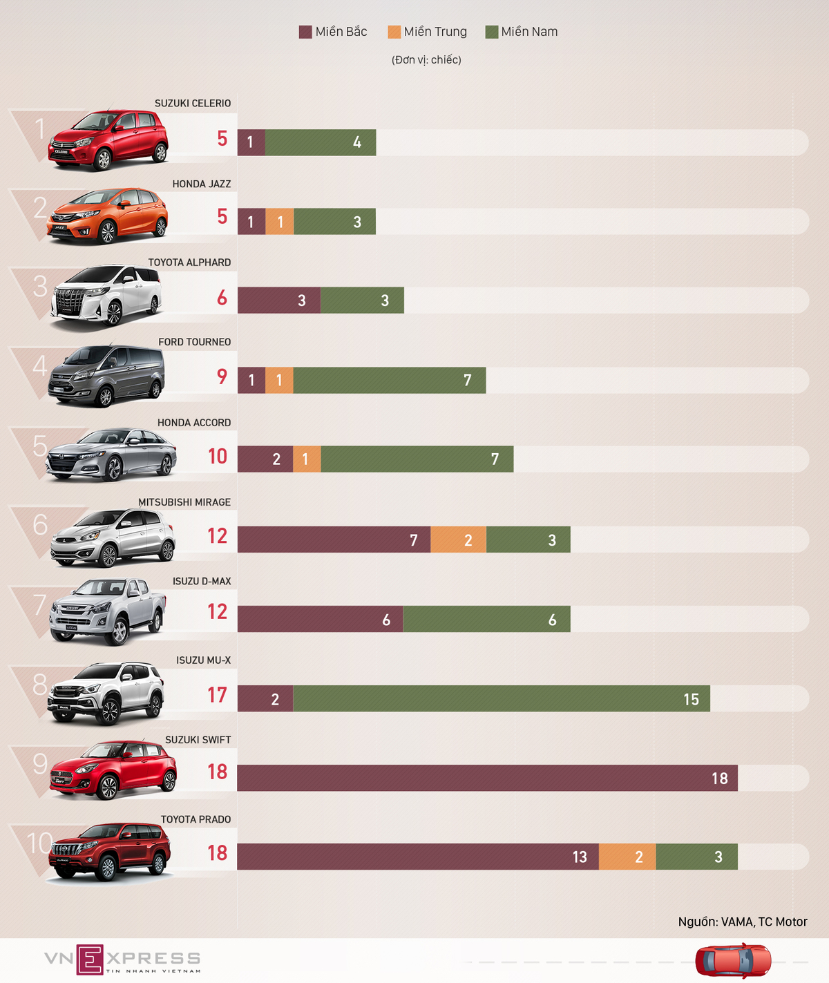 Ba mẫu xe Celerio, Jazz, Alphard dẫn đầu danh sách ôtô bán chậm nhất tháng.