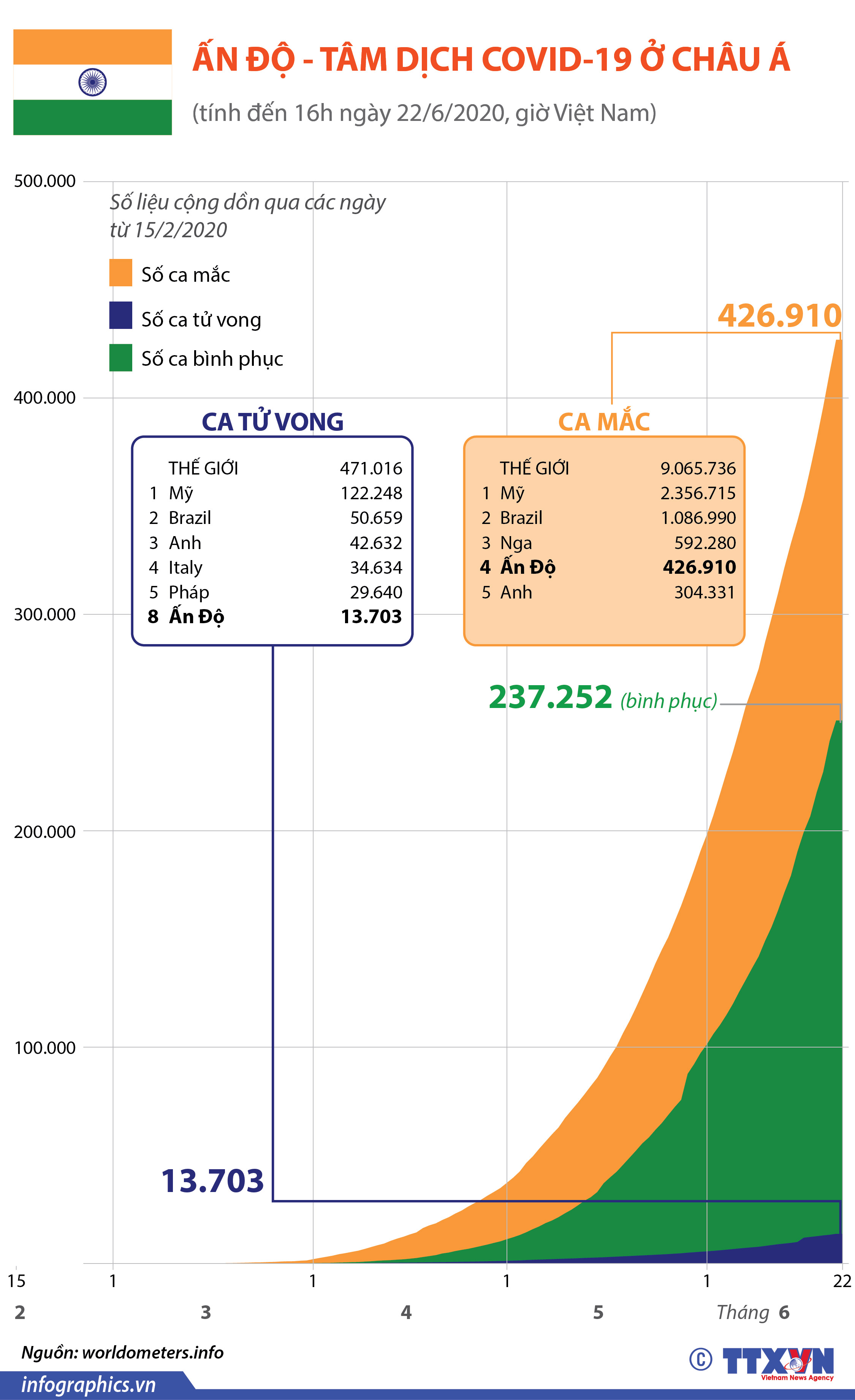 Ấn Độ - Tâm dịch COVID-19 ở châu Á (đến 16h ngày 22/6/2020)