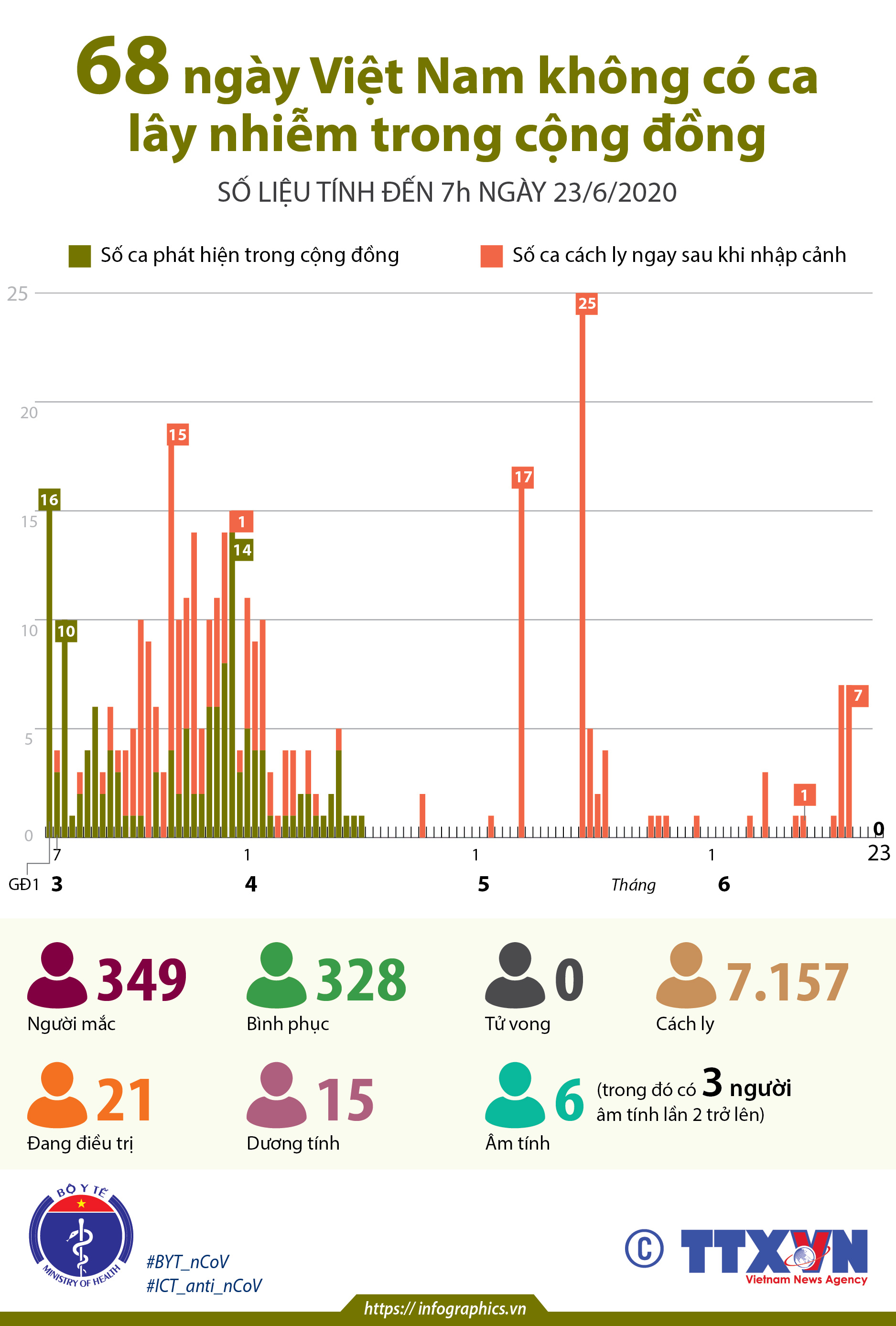 68 ngày Việt Nam không có ca lây nhiễm trong cộng đồng (số liệu tính đến 7h ngày 23/6/2020)