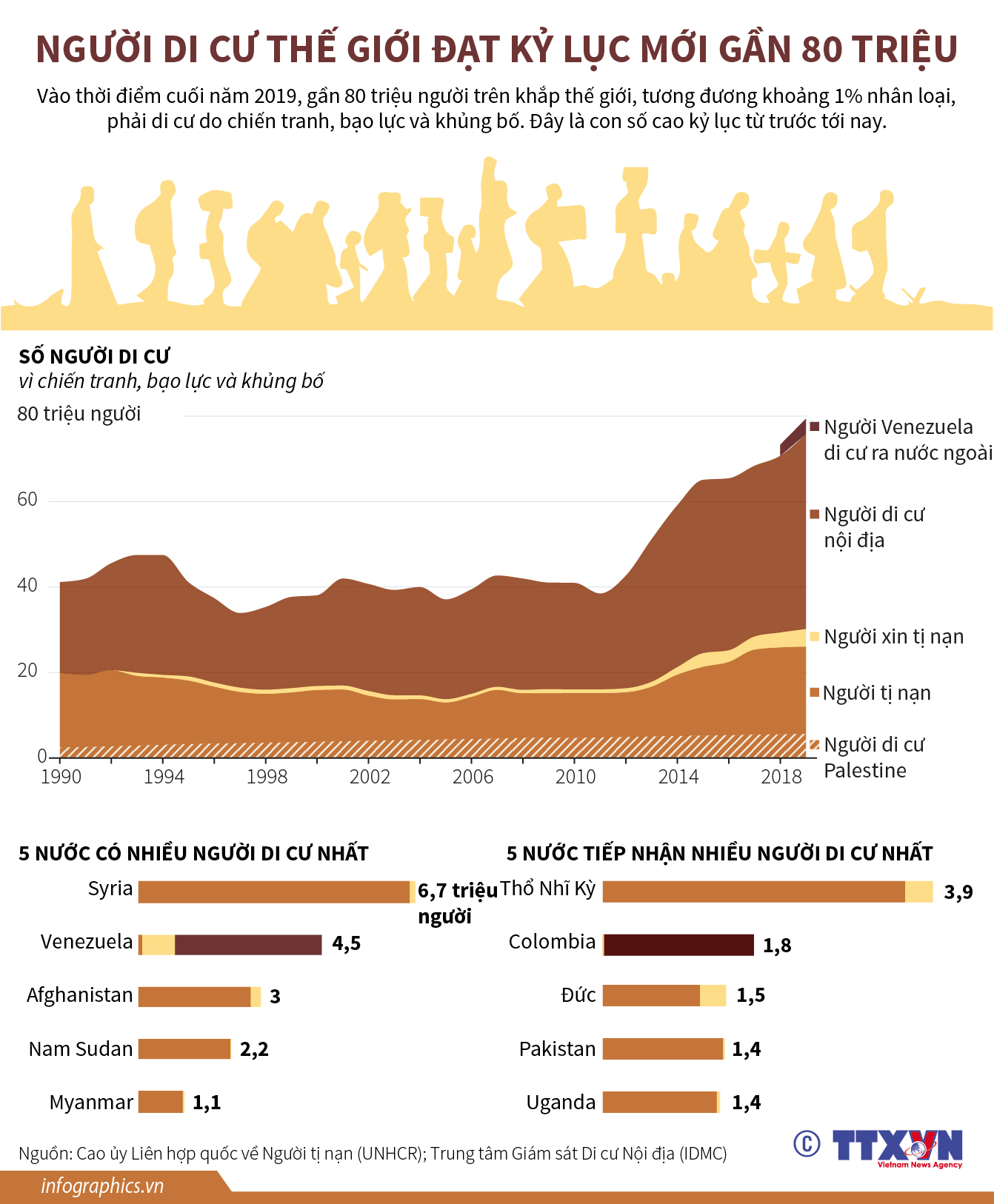 Vào thời điểm cuối năm 2019, gần 80 triệu người trên khắp thế giới, tương đương khoảng 1% nhân loại, phải di cư do chiến tranh, bạo lực và khủng bố. Đây là con số cao kỷ lục từ trước tới nay.