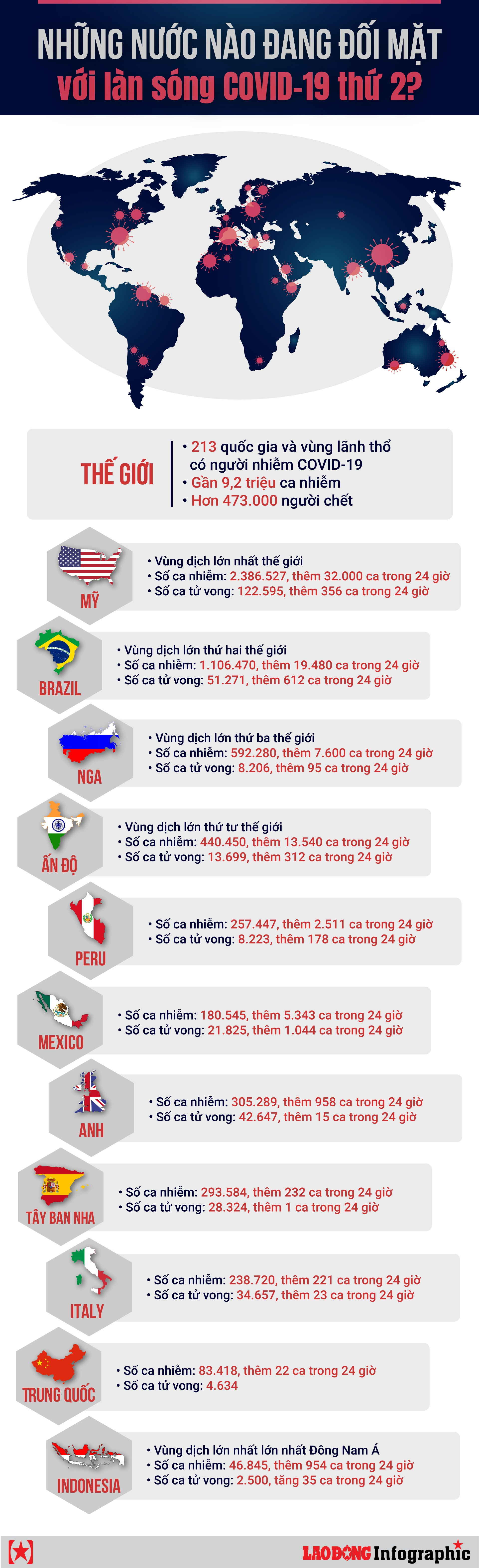 Những nước nào đang đối mặt với làn sóng COVID-19 thứ 2?