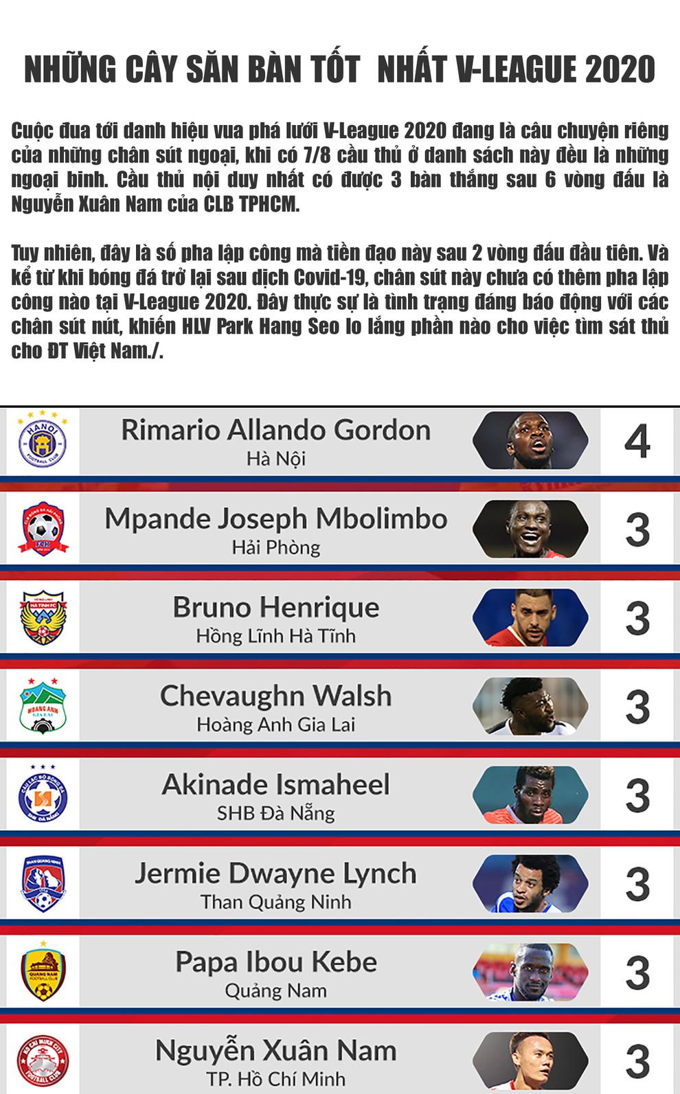 Cuộc đua “Vua phá lưới” V-League 2020: Cơn đau đầu của thầy Park