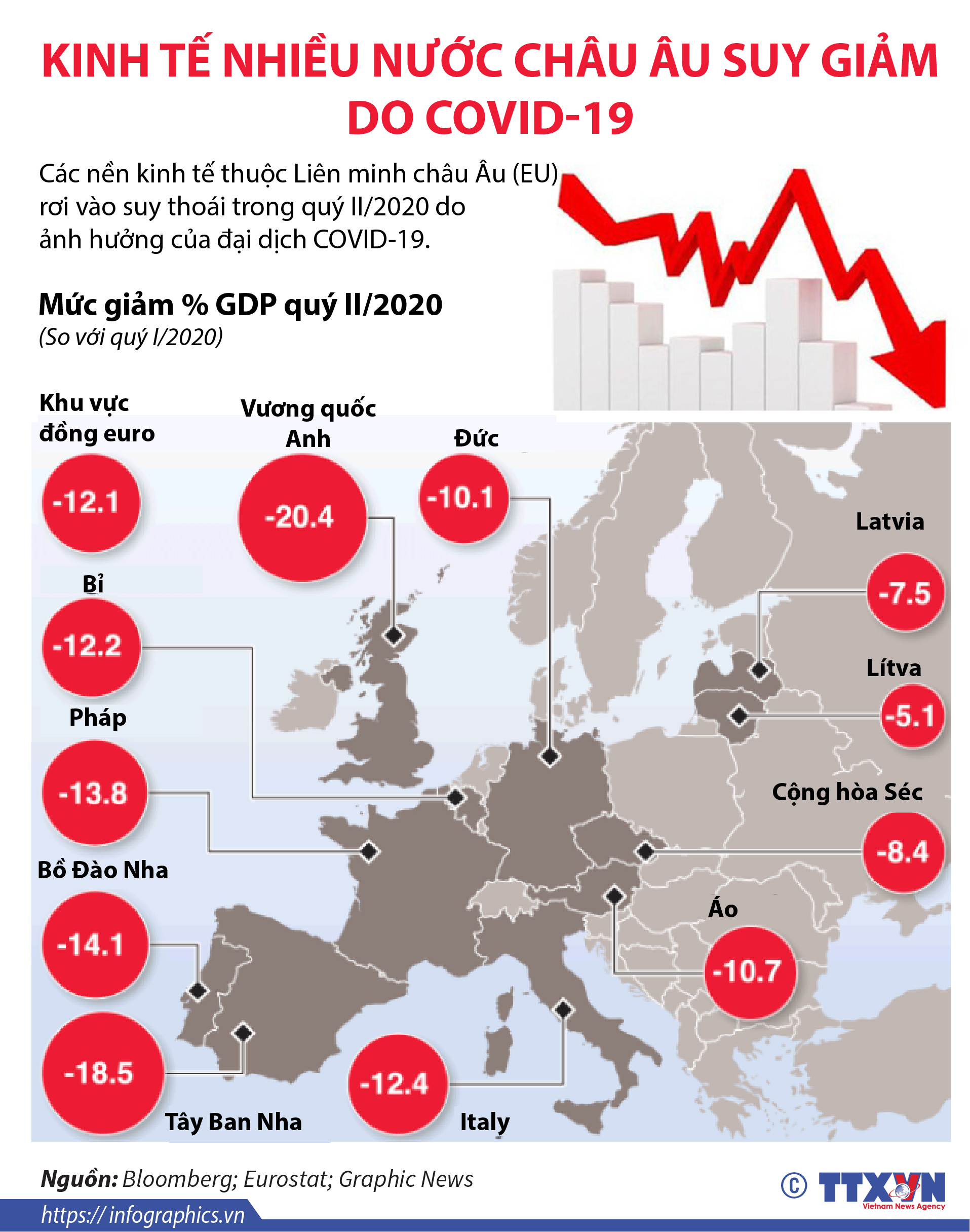 Các nền kinh tế thuộc Liên minh châu Âu (EU) đang rơi vào suy thoái trong quý II/2020 do ảnh hưởng của đại dịch COVID-19.