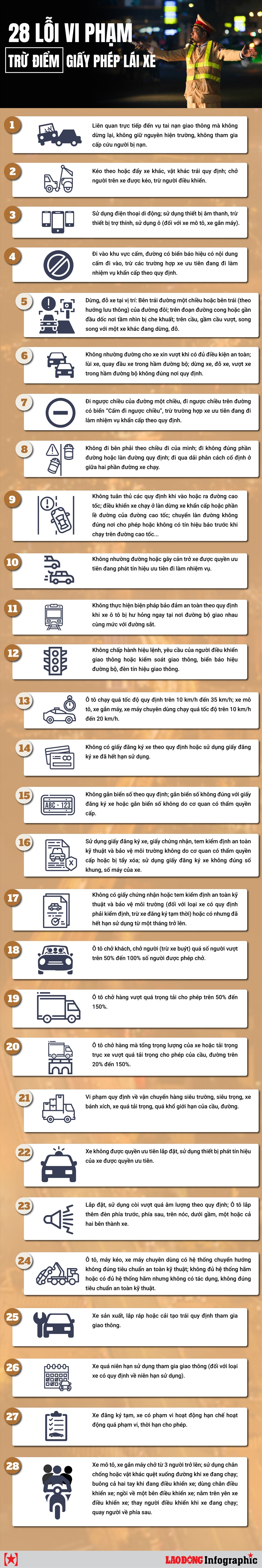 Chi tiết 28 lỗi vi phạm giao thông sẽ bị trừ điểm trên bằng lái xe
