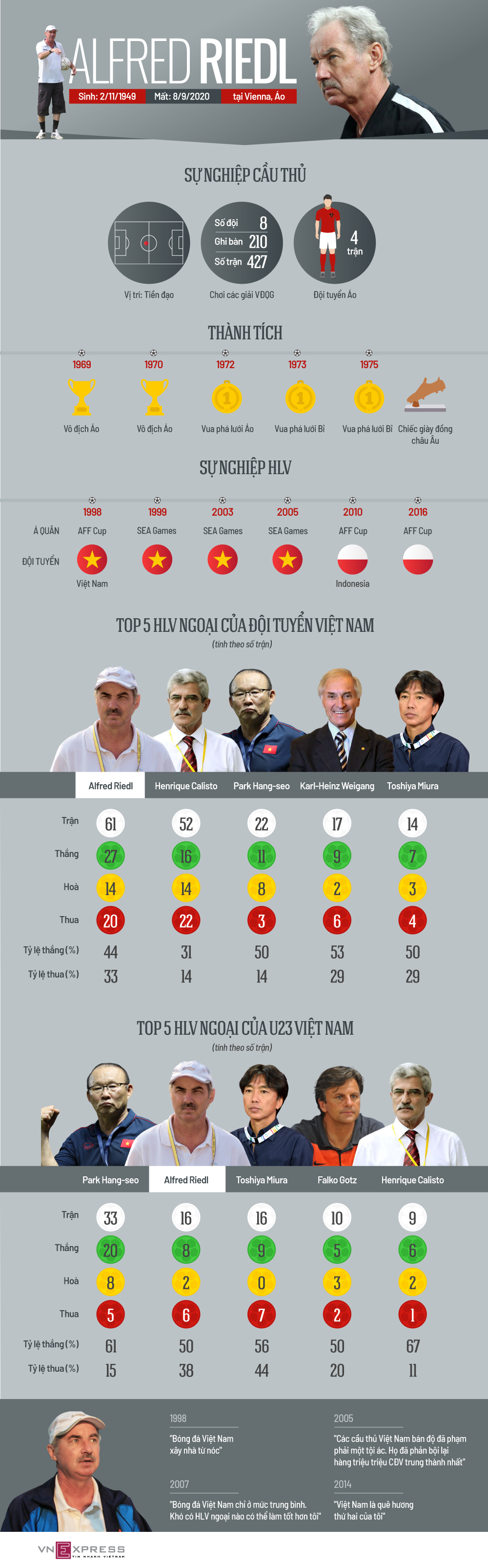 Dù bị gán mác "Vua về nhì", Alfred Riedl vẫn được xem là một trong những HLV thành công và được yêu mến nhất Việt Nam.