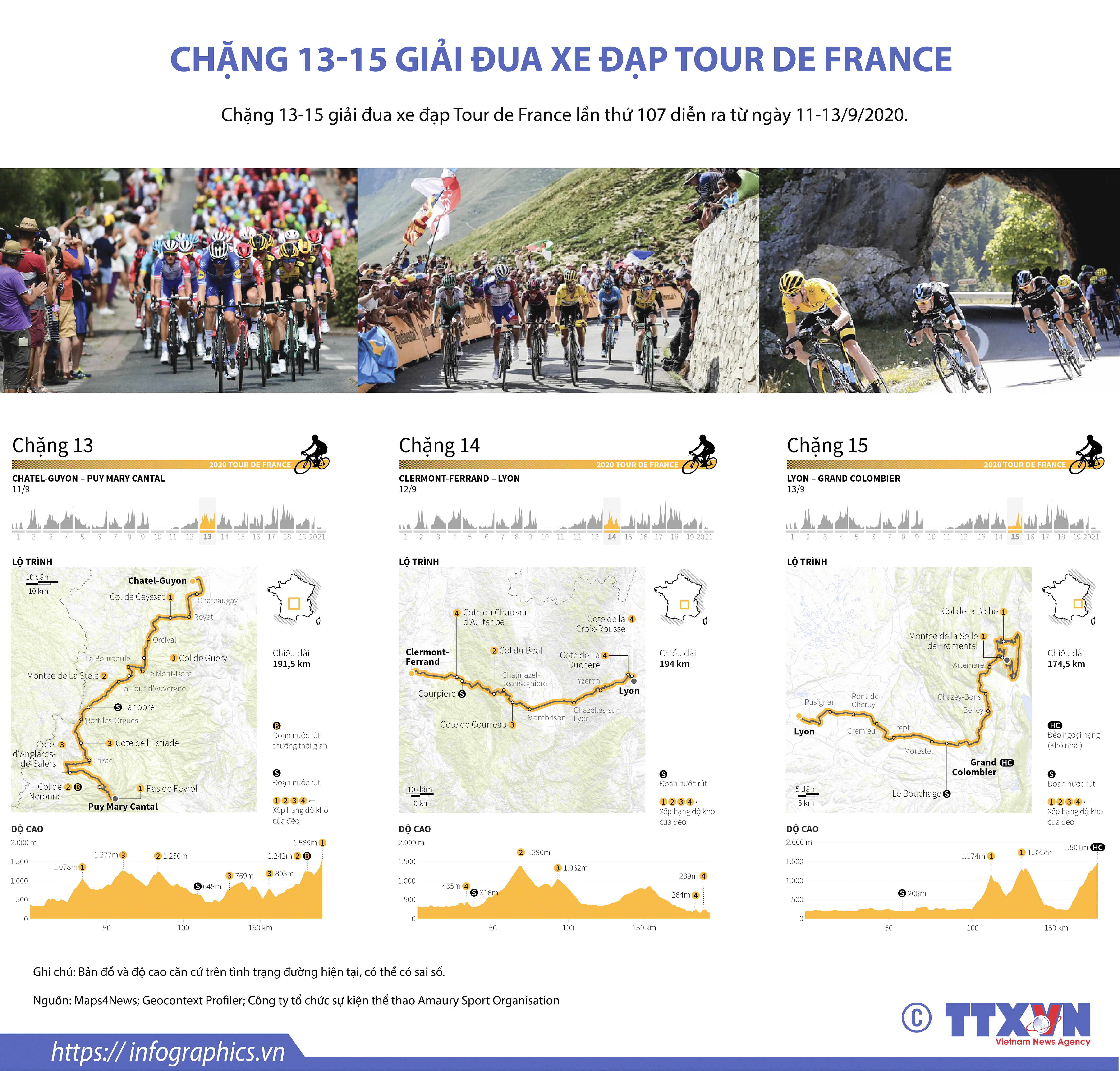 Chặng 13-15 giải đua xe đạp Tour de France lần thứ 107 diễn ra từ ngày 11-13/9/2020.