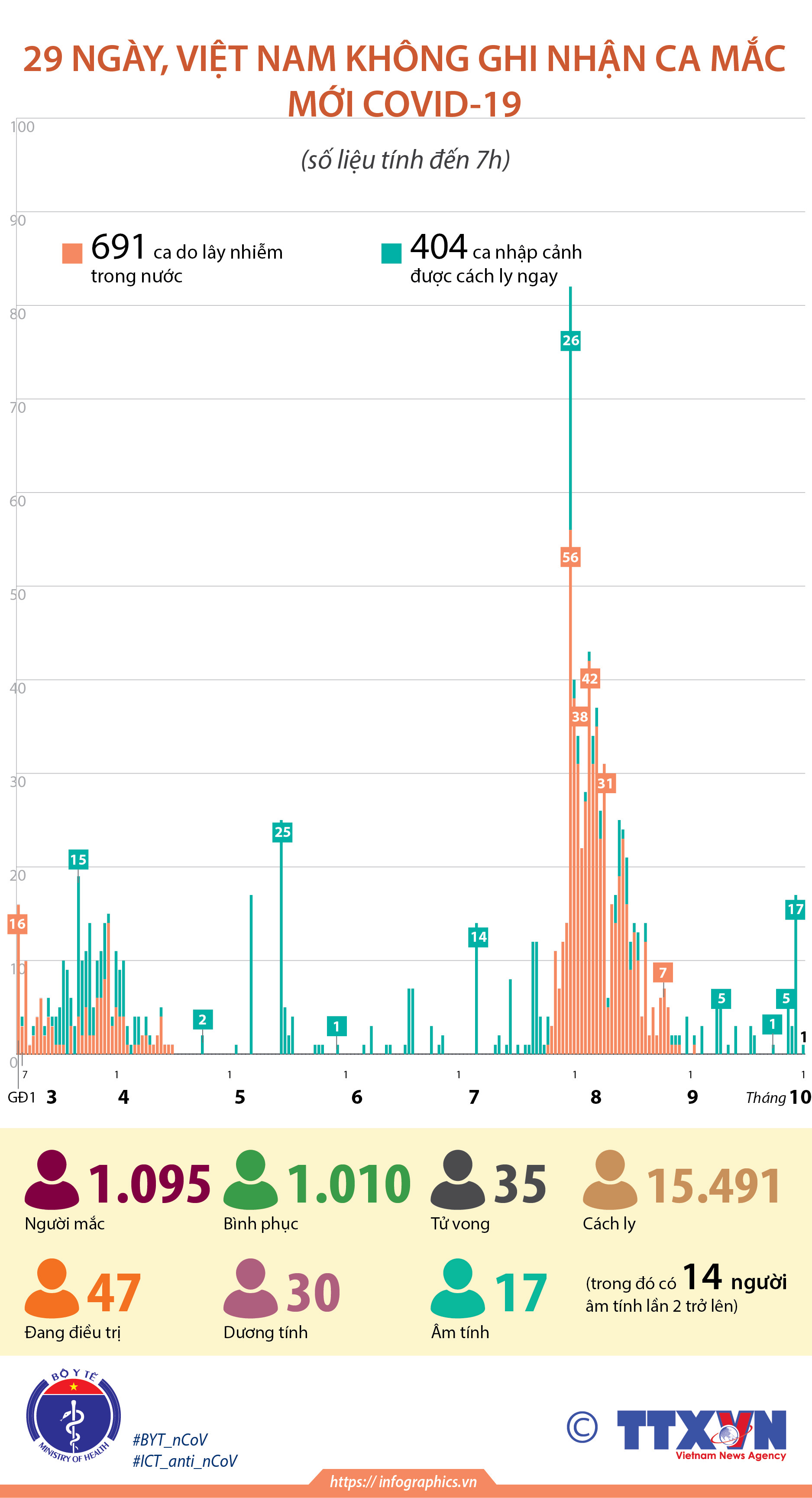29 ngày Việt Nam không ghi nhận ca mắc mới COVID-19 trong cộng đồng (tính đến 7h ngày 1/10/2020)