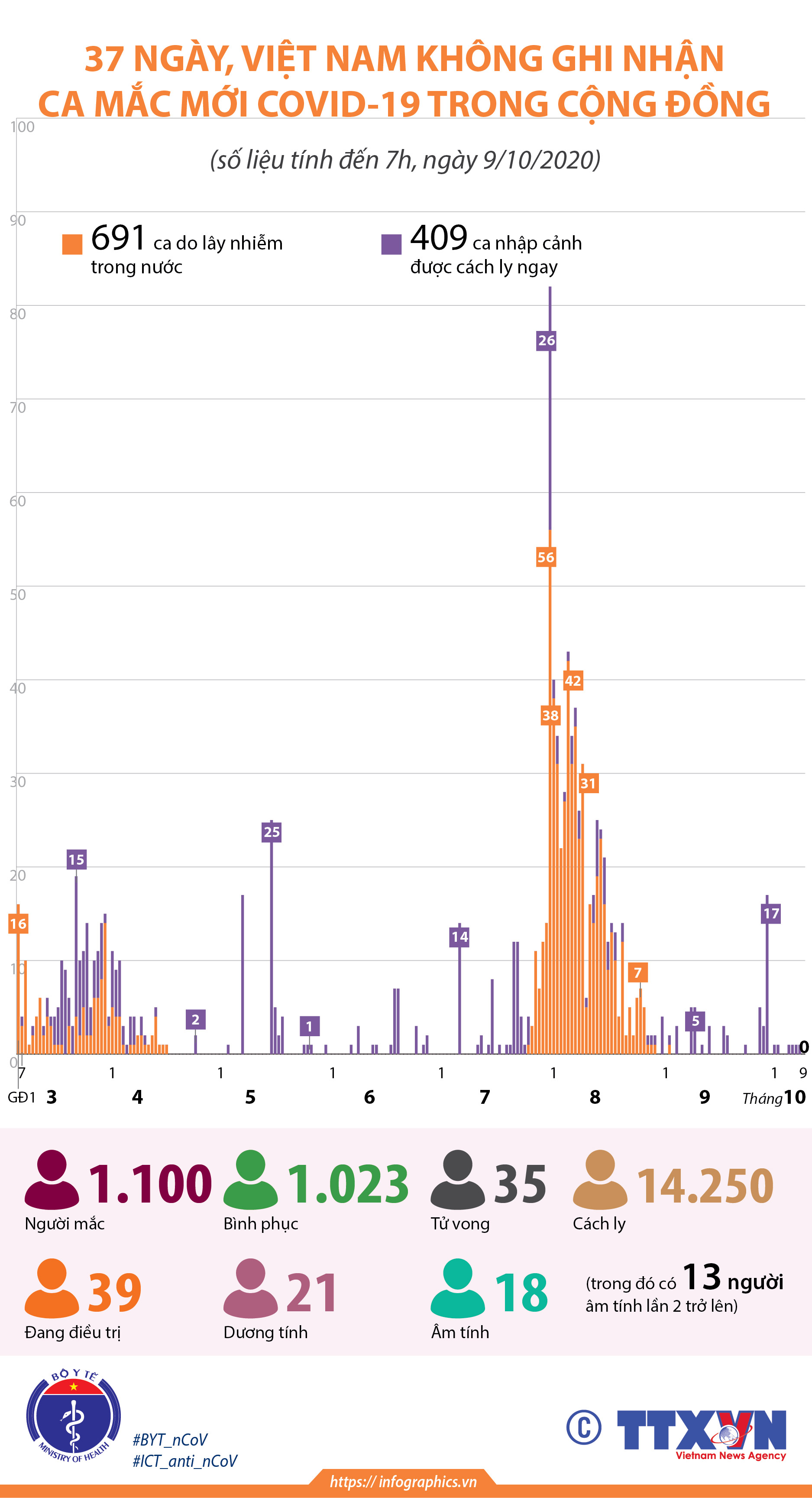 37 ngày, Việt Nam không ghi nhận ca mắc mới COVID-19 trong cộng đồng (tính đến 7h, ngày 9/10/2020)