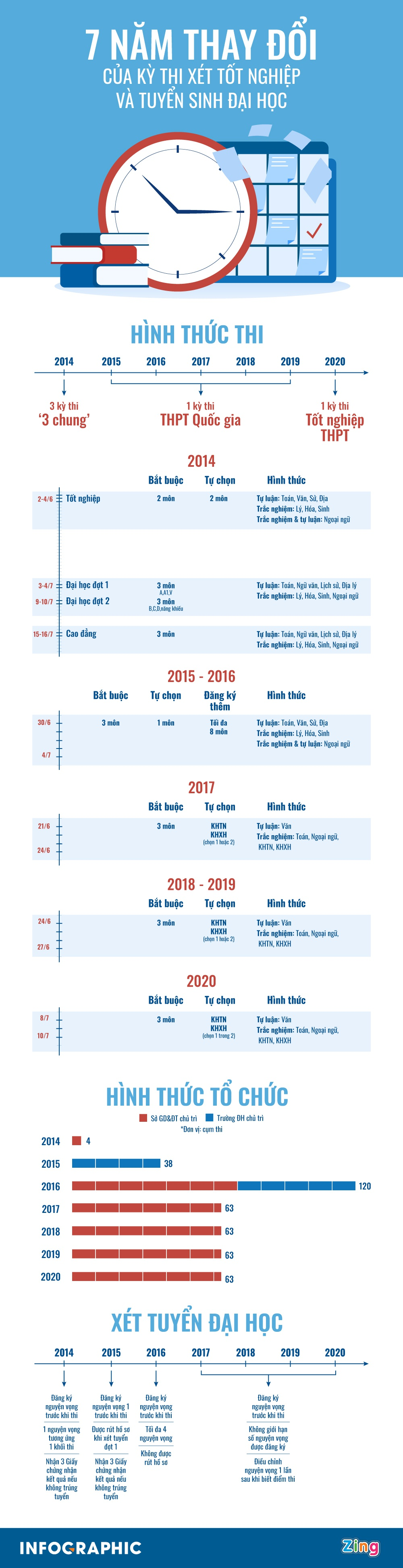 Trong vòng 7 năm, kỳ thi tốt nghiệp và tuyển sinh đại học ở nước ta có nhiều thay đổi từ số lượng môn, hình thức thi.