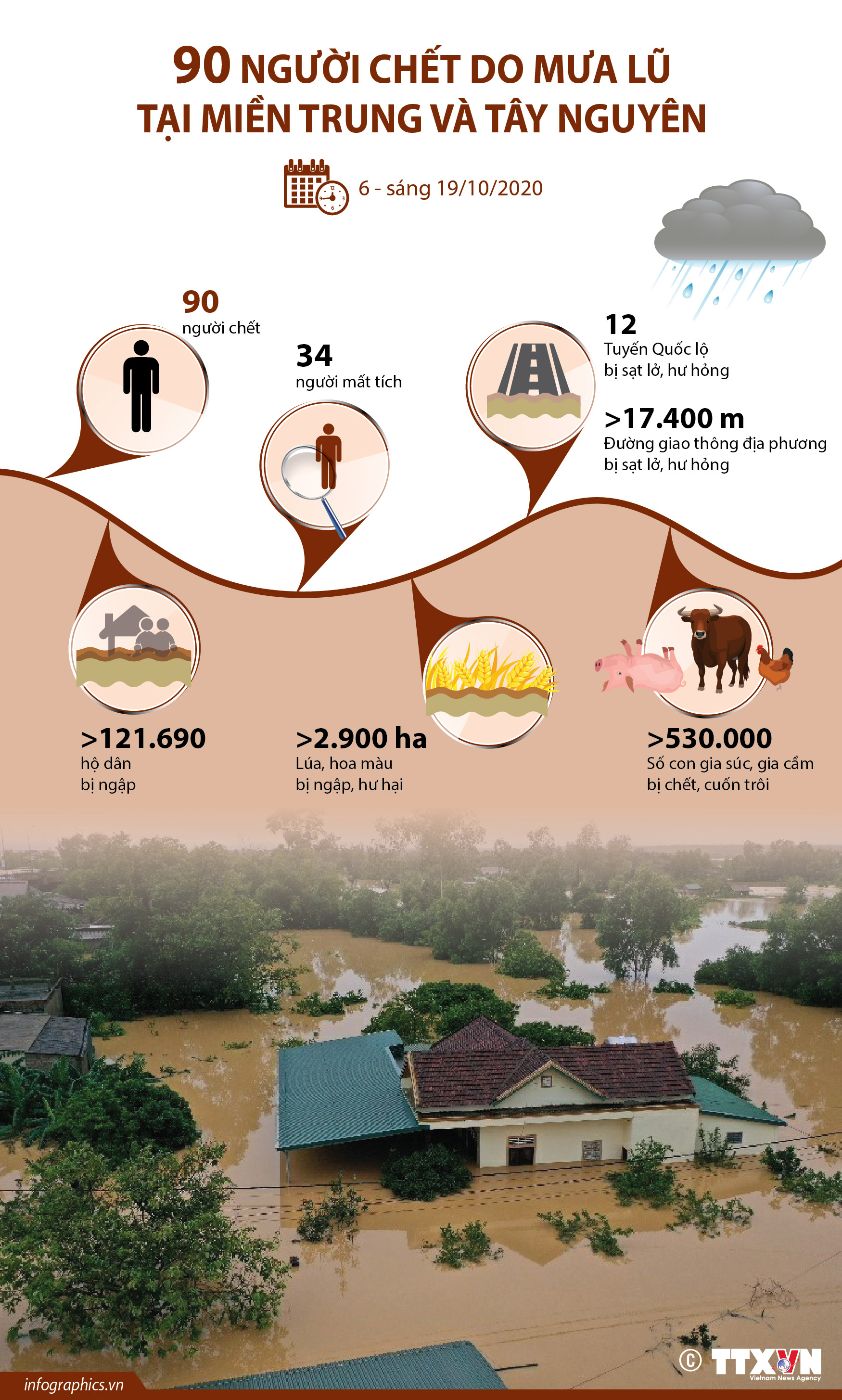 Theo Ban Chỉ đạo Tung ương về Phòng chống thiên tai, từ ngày 6/10 đến sáng 19/10/2020, đã có 124 người chết và mất tích do mưa lũ ở miền Trung và Tây Nguyên