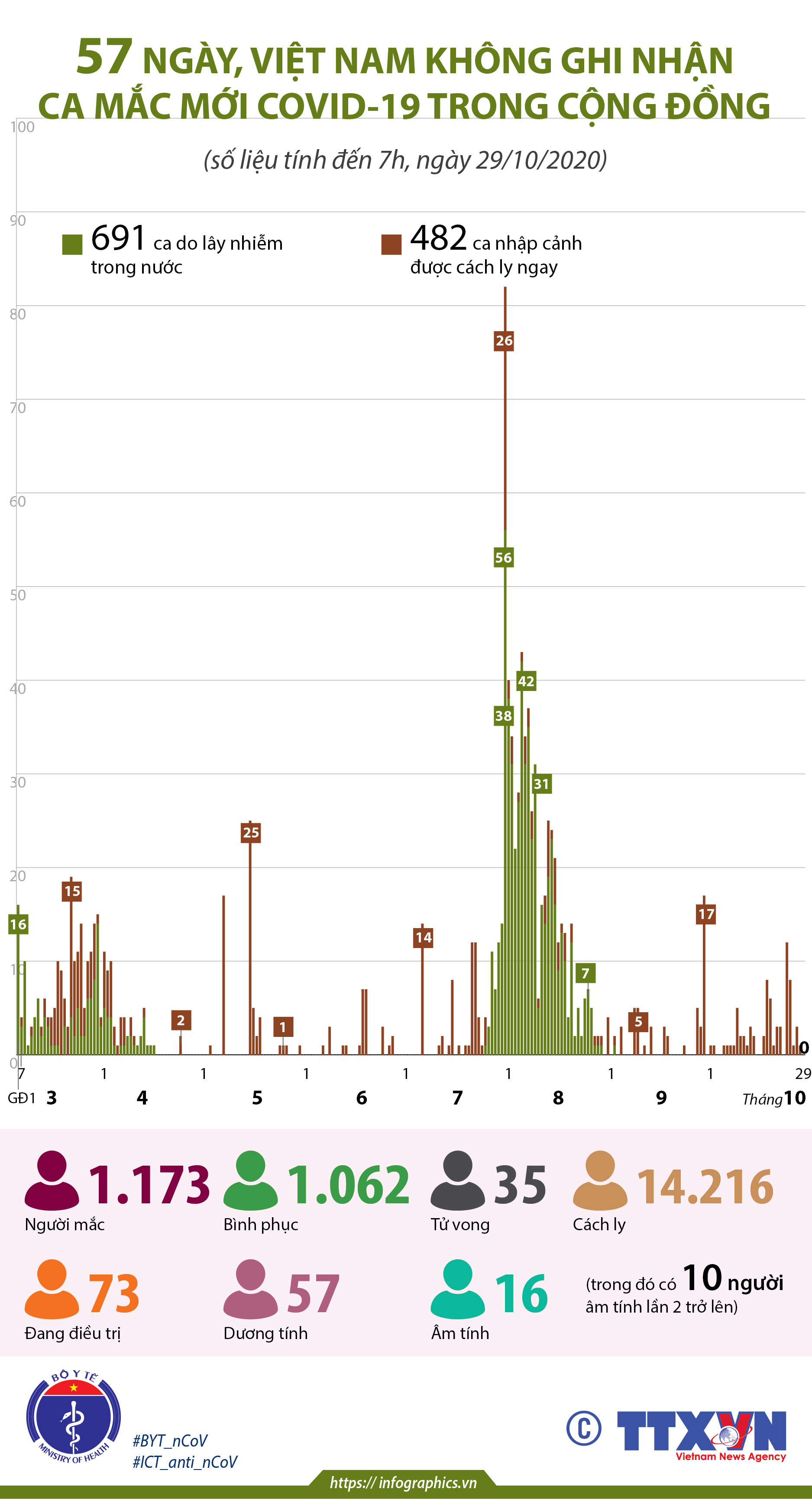 57 ngày, Việt Nam không ghi nhận ca mắc mới COVID-19 trong cộng đồng (tính đến 7h, ngày 29/10/2020)