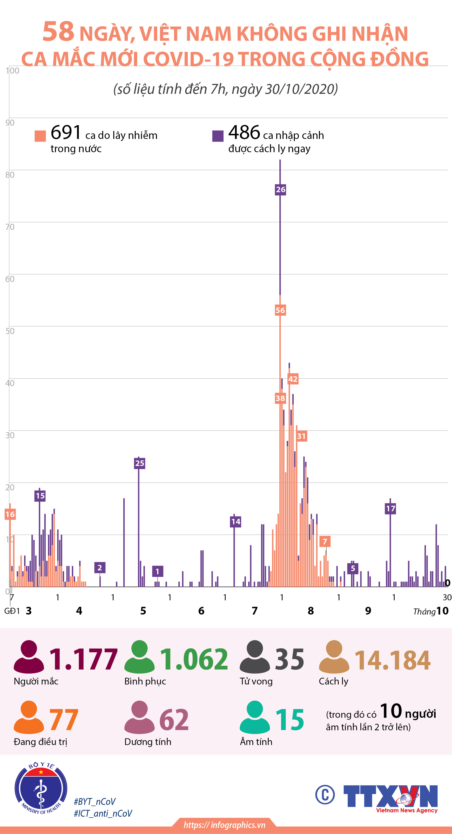 58 ngày, Việt Nam không ghi nhận ca mắc mới COVID-19 trong cộng đồng (tính đến 7h, ngày 30/10/2020)