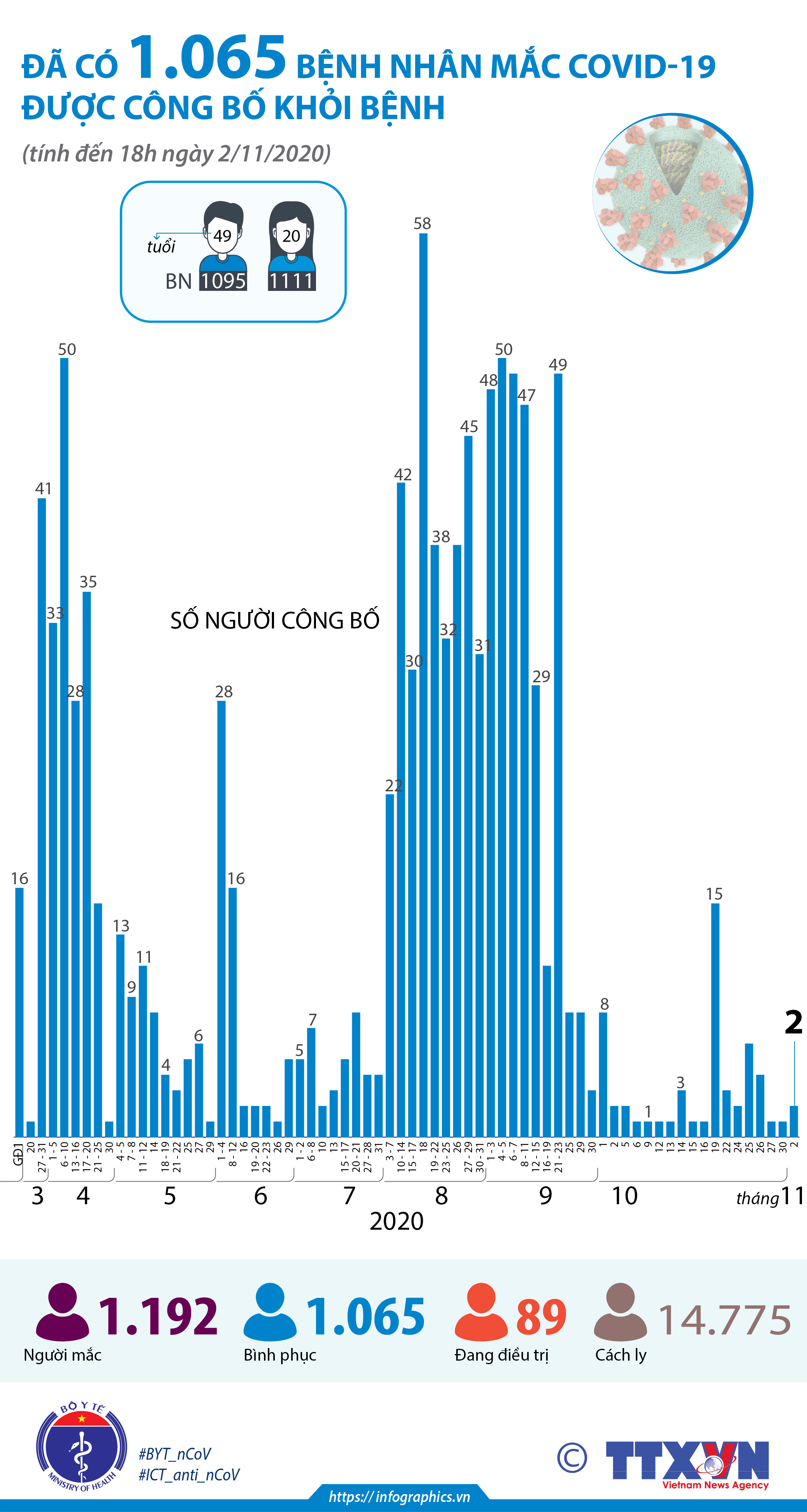 Tính đến 18h ngày 2/11/2020, đã có 1.065 bệnh nhân mắc COVID-19 được công bố khỏi bệnh.