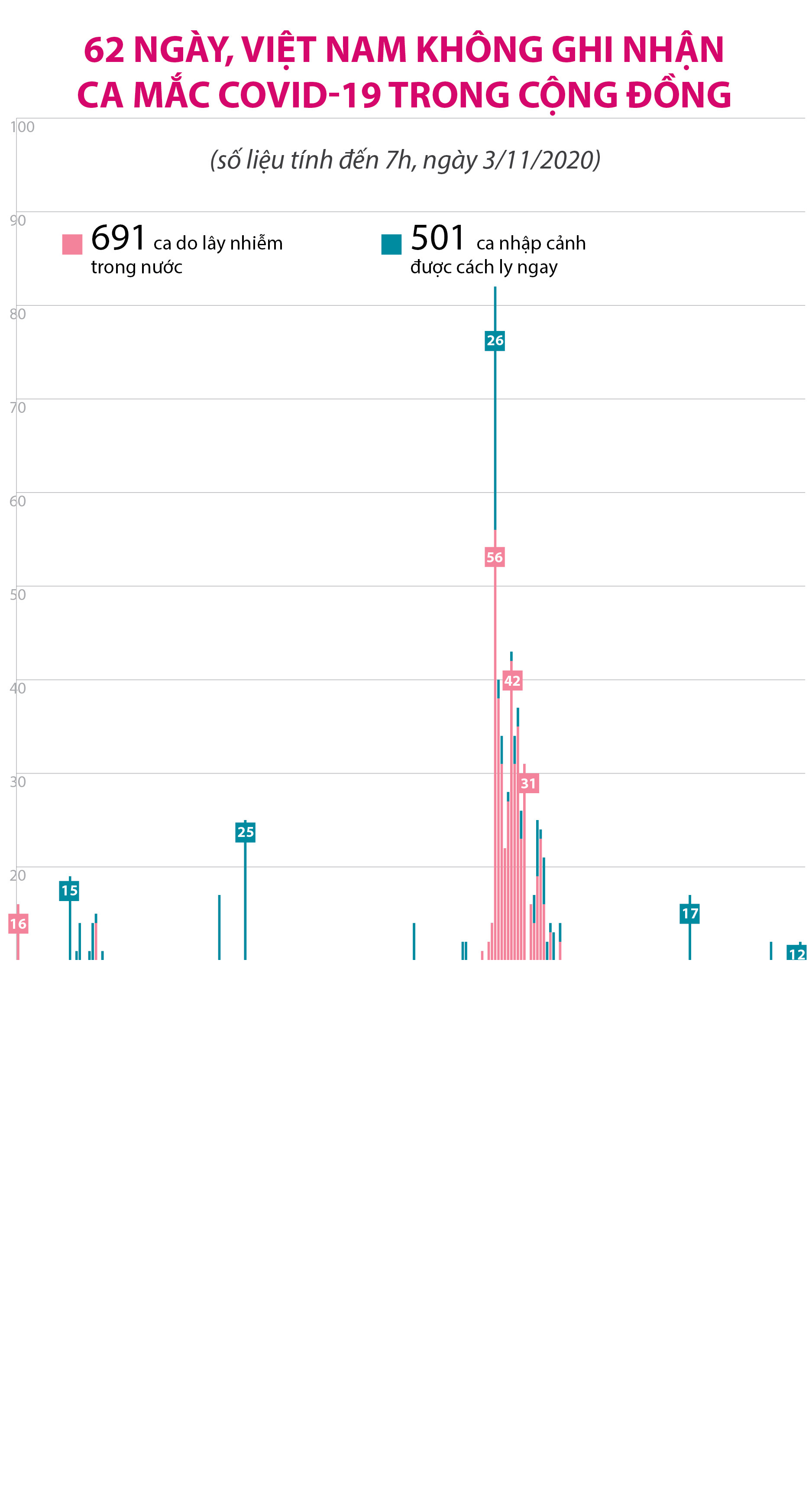 62 ngày, Việt Nam không ghi nhận ca mắc COVID-19 trong cộng đồng (tính đến 7h, ngày 3/11/2020)