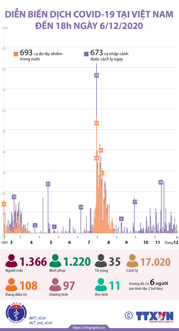 Diễn biến dịch COVID-19 tại Việt Nam tính đến 18h ngày 6/12/2020