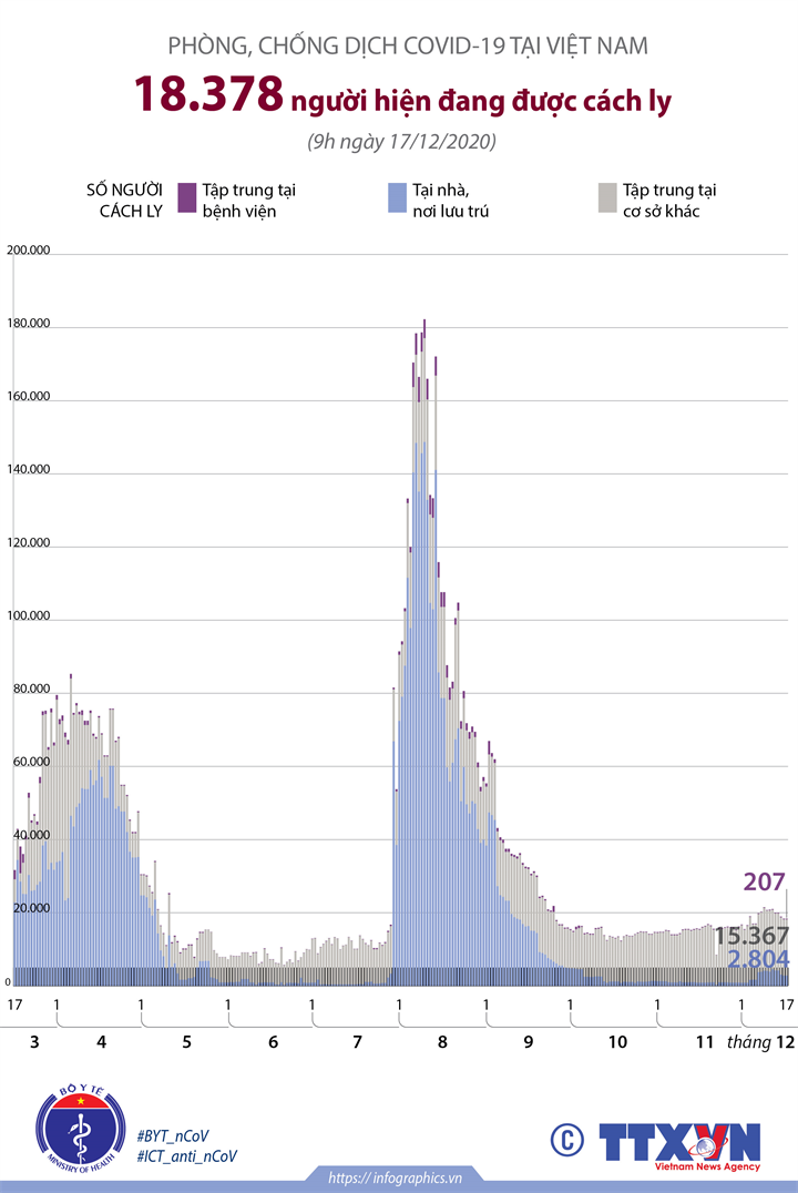 Phòng chống dịch COVID-19 tại Việt Nam: 18.378 người đang được cách ly (tính đến 9h ngày 17/12/2020)