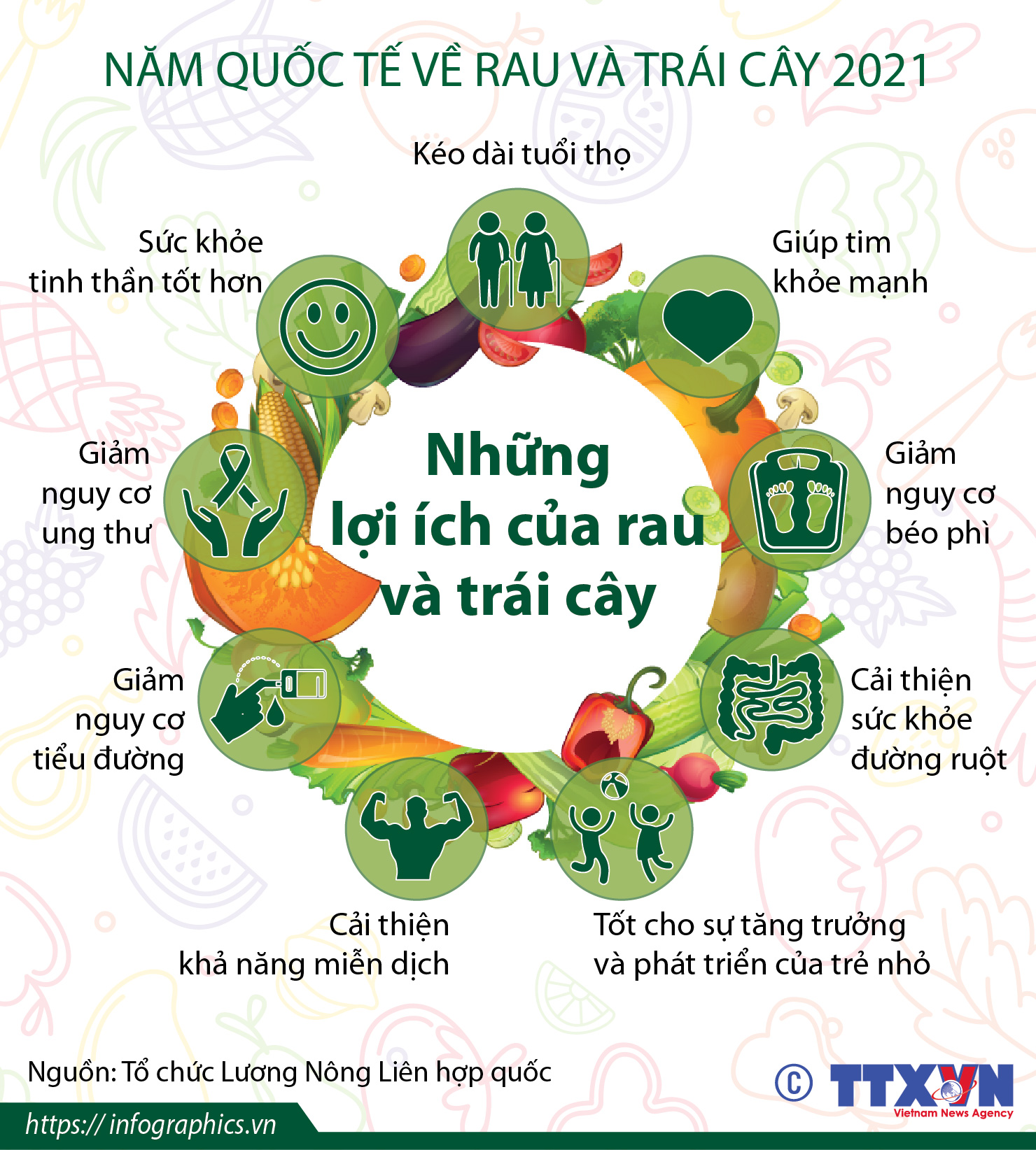 Năm Quốc tế về rau và trái cây 2021 đã được công bố tại khóa họp thứ 74 của Đại Hội đồng Liên hợp quốc, dành để nâng cao nhận thức về vai trò quan trọng của rau và trái cây đối với dinh dưỡng con người, an ninh lương thực và sức khỏe.