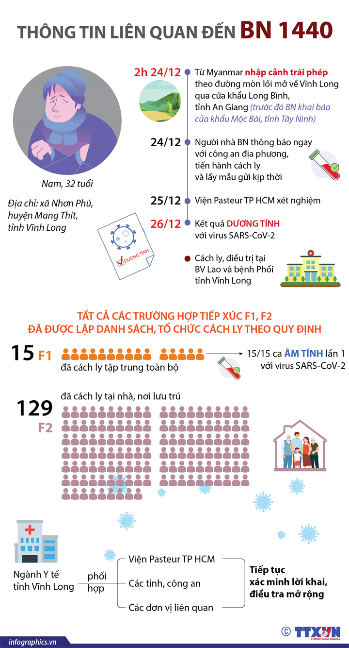 BN1440 là trường hợp từ Myanmar nhập cảnh trái phép qua đường mòn lối mở vào rạng sáng 24/12/2020 có tiền sử đi lại khá phức tạp.
