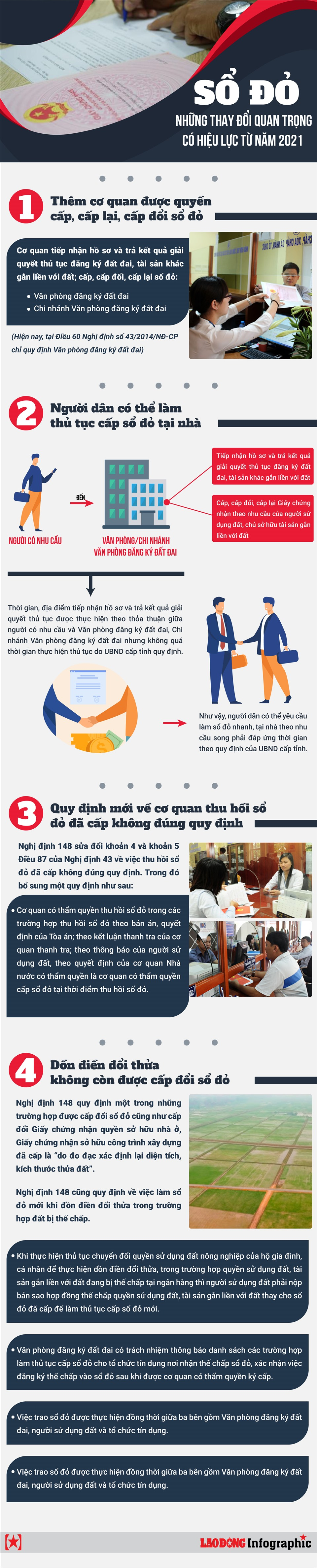 Nghị định 148/2020/NĐ-CP sửa đổi, bổ sung một số nghị định quy định chi tiết thi hành Luật Đất đai sẽ chính thức có hiệu lực từ 8/2/2021, trong đó có một số điểm thay đổi quan trọng liên quan đến sổ đỏ.