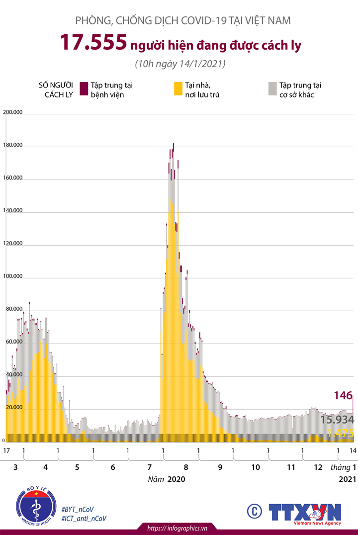 Phòng chống dịch COVID-19 tại Việt Nam: 17.555 người đang được cách ly (tính đến 10h ngày 14/1/2021)