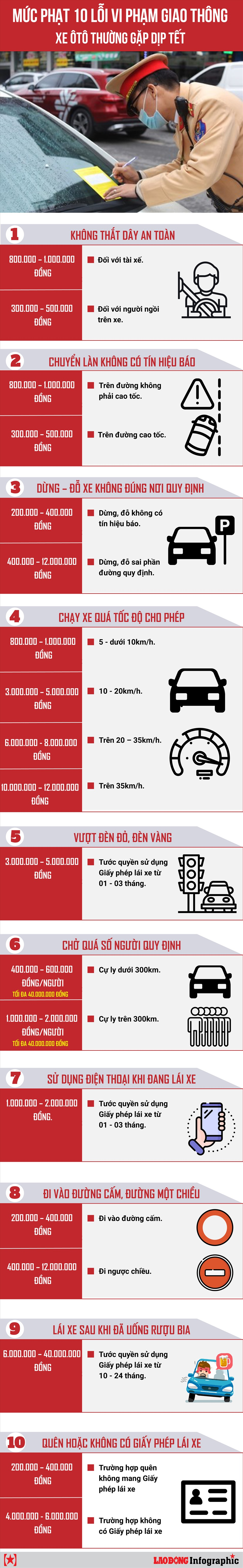 Mức phạt 10 lỗi vi phạm giao thông xe ôtô thường gặp dịp Tết