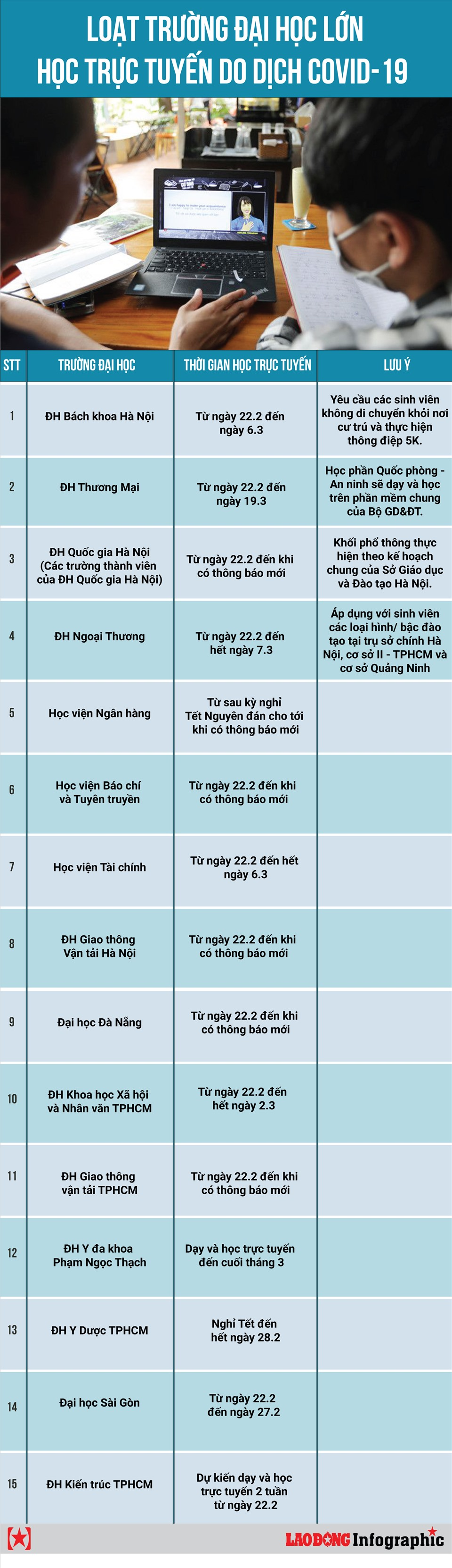 Do diễn biến phức tạp của dịch COVID-19, nhiều trường đại học như Trường Đại học Bách khoa Hà Nội, Trường Đại học Ngoại thương, Đại học Quốc gia Hà Nội... đã chuyển sang hình thức dạy và học trực tuyến.