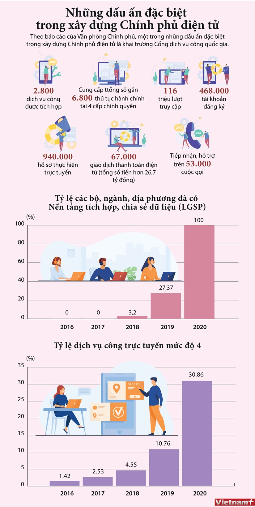 Theo báo cáo của Văn phòng Chính phủ, một trong những dấu ấn đặc biệt trong xây dựng Chính phủ điện tử là khai trương Cổng dịch vụ công quốc gia.