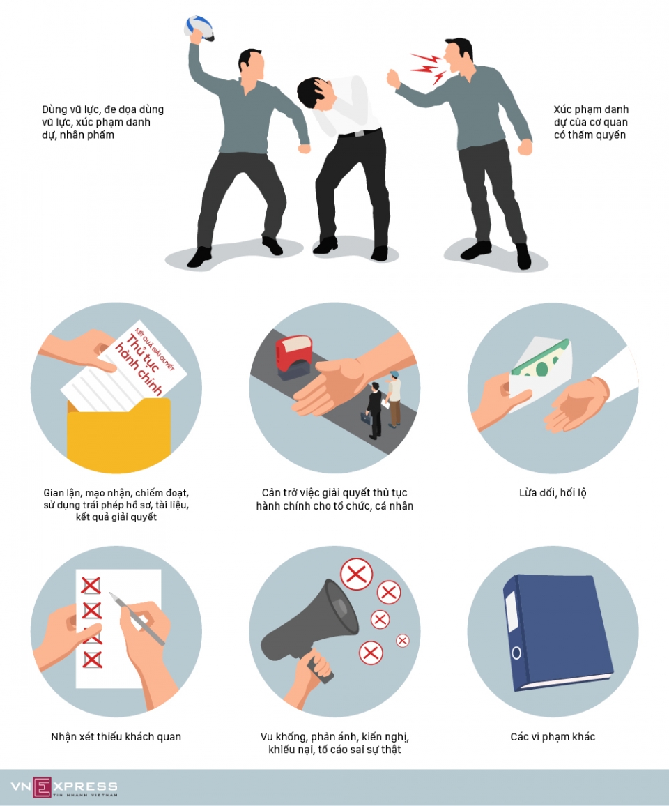 Khi đến làm thủ tục hành chính một cửa, bạn không được dùng vũ lực, đe doạ, xúc phạm danh dự cán bộ đang thực thi nhiệm vụ.
