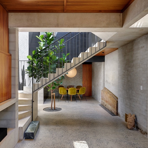 Cách bố trí thang, giếng trời của ngôi nhà ở Sydney (Australia) khiến sân vườn và nơi sinh hoạt của gia đình hòa nhập vào nhau.