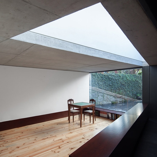 Khi mở rộng thêm cho ngôi nhà ở Bồ Đào Nha, các kiến trúc sư tạo lập một giếng trời hình tam giác để tạo sự liên kết với các hình khối tương tự ở sân.