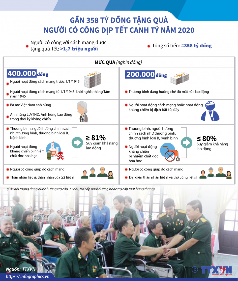 Gần 358 tỷ đồng tặng quà người có công dịp Tết Canh Tý năm 2020