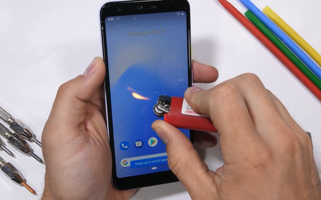 Ở phía ngược lại, danh hiệu điện thoại bền nhất đã thuộc về Pixel 3a – cũng là một sản phẩm của Google. Đây cũng là mẫu điện thoại được đánh giá là dễ sửa chữa nhất. Trong thử nghiệm của JerryRigEverything, chỉ mất vài phút để tháo rời và thay thế dễ dàng những thành phần linh kiện bên trong kể cả màn hình của Pixel 3a.