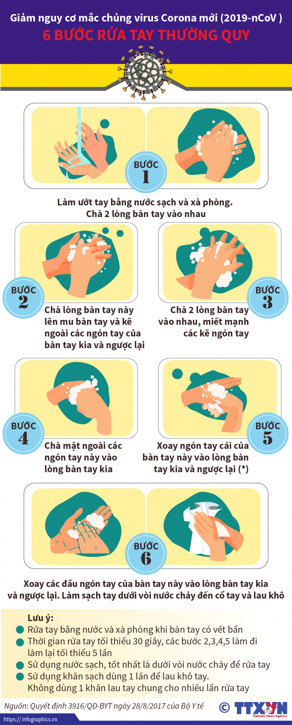 Giảm nguy cơ mắc chủng virus Corona mới (2019-nCoV): 6 bước rửa tay thường quy