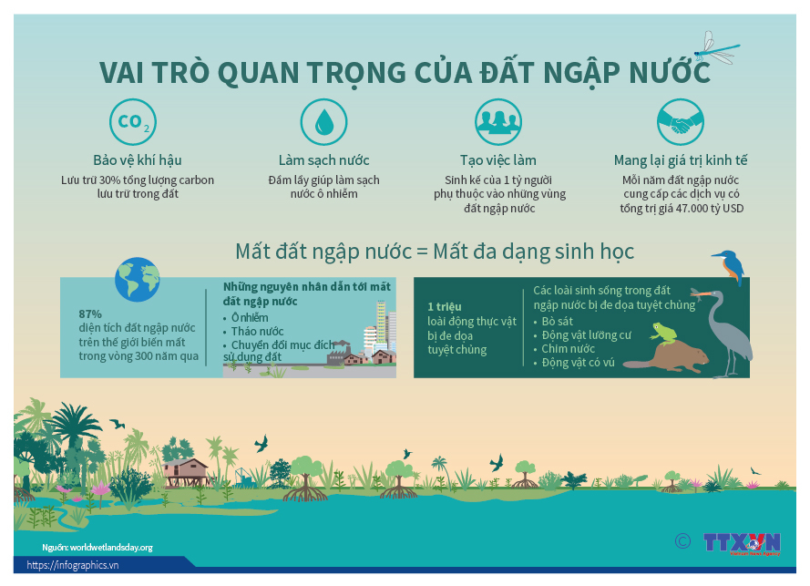 Vai trò quan trọng của đất ngập nước