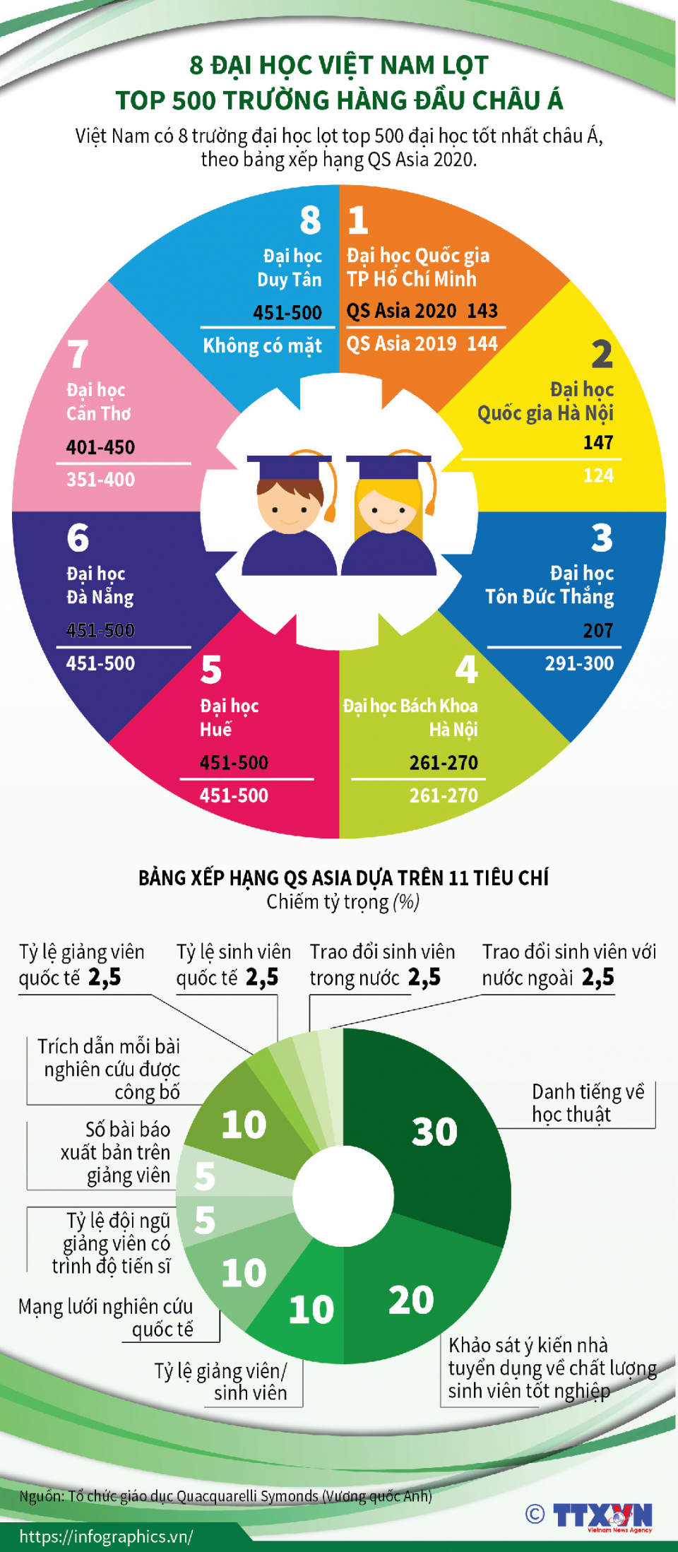Việt Nam có 8 trường đại học lọt top 500 đại học tốt nhất châu Á, theo bảng xếp hạng QS Asia 2020.