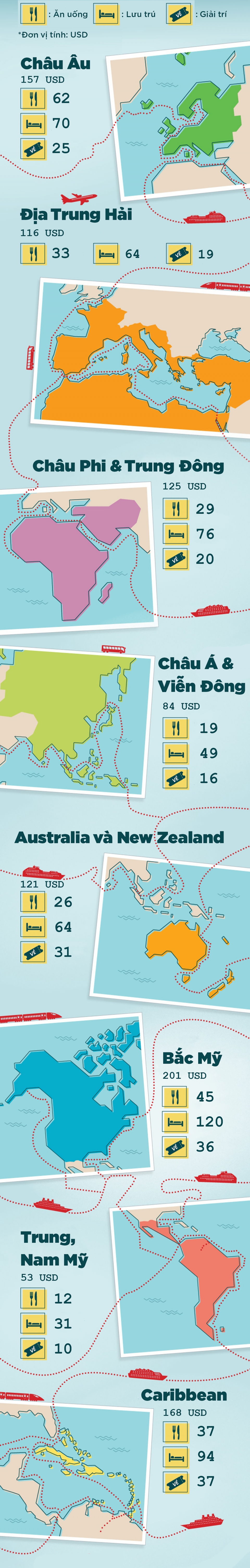 Bắc Mỹ là nơi đắt nhất với mức chi hơn 200 USD cho các dịch vụ cơ bản mỗi ngày, trong khi Trung, Nam Mỹ là khu vực rẻ nhất.