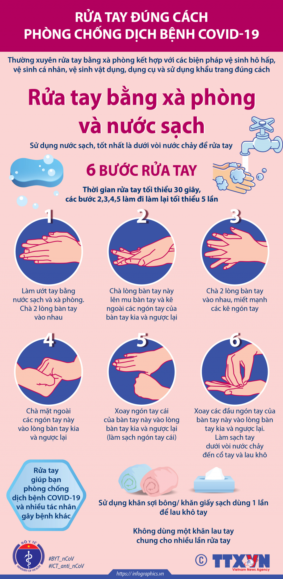 Rửa tay đúng cách phòng chống dịch bệnh COVID-19:Rửa tay bằng xà phòng và nước sạch
