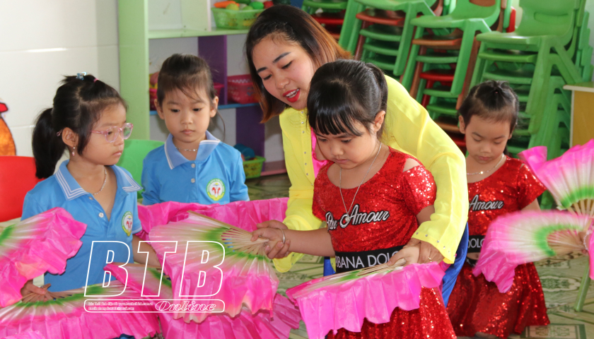 Giờ học múa của cô và trò Trường Mầm non Bình Minh (Kiến Xương).