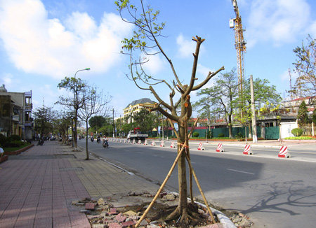 Cây bật gốc trên đường Lê Lợi đã được dựng lại.