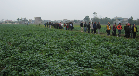 Trong khi đó, giá trị ngày công trong sản xuất nông nghiệp thấp, nguồn lao động chính ở nông thôn ngày một giảm do chuyển sang hình thức lao động khác có thu nhập cao hơn. Ðặc biệt, sau thu hoạch lúa, lượng rơm rạ dư thừa rất lớn nên người nông dân thường đốt ngay trên đồng ruộng, vệ đường gây ô nhiễm môi trường và tiềm ẩn nhiều rủi ro cho người tham gia giao thông. Ðể giải quyết những bất cập trên, vụ đông năm 2012 Chi cục BVTV đã xây dựng 8 mô hình trồng khoai tây làm đất tối thiểu với diện tích 32 ha. Theo đó, Chi cục đã triển khai các bước thực hiện mô hình cho các thành viên tham gia, đồng thời đã tổ chức các lớp tập huấn về quy trình sản xuất trồng khoai tây làm đất tối thiểu, các đối tượng sâu bệnh gây hại chính và kỹ thuật sử dụng thuốc BVTV… đến từng hộ dân trong mô hình và ngoài mô hình. Tại các mô hình được trồng bằng khoai tây Solora, đây là giống có độ thuần cao, sạch sâu bệnh. Bà Nguyễn Thị Nga, Chi cục phó Chi cục BVTV cho biết: Các chân đất ở các mô hình khi làm có độ ẩm từ 70 - 80%, sau đó thu gom rạ theo luống hoặc chất thành đống để che phủ khi đã trồng khoai; khi lên luống định hình bằng cách căng dây, luống đơn thì trồng 1 hàng, bề rộng từ 50c - 70cm, luống đôi trồng 2 hàng bề rộng từ 1-1,2 m; 1 ha bón 190 tạ phân chuồng, 270 kg phân Urê, 420 kg phân Super lân, 224 kg phân Kaliclorua; trước khi đặt củ phải bón lót phân chuồng, đạm, lân theo hốc và đặt một ít cát hoặc đất nhỏ cánh biệt giữa củ giống và phân bón, sau đó phủ một lớp cát mỏng trên củ và phủ rạ dày 7-10cm… Do thực hiện đúng các quy trình sản xuất, như bón phân cân đối, đạm vừa đủ theo nhu cầu của cây và bón thúc sớm nên diện tích khoai trong mô hình đã tiết kiệm được 30 kg đạm/ha, cây khỏe, ít sâu bệnh, giảm 1 lần phun thuốc/vụ, ít đổ so với khoai ngoài mô hình. Ðồng thời năng suất cao hơn 6,36 - 10%/ ha so với sản xuất truyền thống, như ở An Mỹ khoai phủ rạ đạt năng suất 102 tạ/ha, phủ bằng đất 95 tạ/ha; Vân Trường, khoai phủ rạ năng suất đạt 140 tạ/ha, phủ bằng đất 126 tạ/ha; ở Thái Giang, khoai phủ rạ năng suất 140 tạ/ha, phủ bằng đất 126 tạ/ha… Ngoài ra, ngày công lao động ở mô hình cũng giảm khá nhiều, như công làm đất giảm 54 công/ha, công trồng giảm 29 công/ha, công chăm sóc giảm 81 công/ha… so với trồng khoai truyền thống; tính từ khâu làm đất đến khi thu hoạch giảm được 193 công lao động/ha. Cùng với tăng năng suất, giảm ngày công lao động, giảm lượng phân bón… sản phẩm khoai tây làm đất tối thiểu còn cho củ đẹp, sáng bóng vì không bị dính đất nên bán được giá cao hơn, bảo quản trong kho lạnh ít hao.