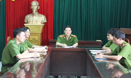 Lãnh đạo Phòng PC46 (Công an tỉnh) triển khai nhiệm vụ công tác cho các đội nghiệp vụ.