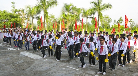 Học sinh Trường Tiểu học xã Vũ Lăng, Tiền Hải đồng diễn thể dục