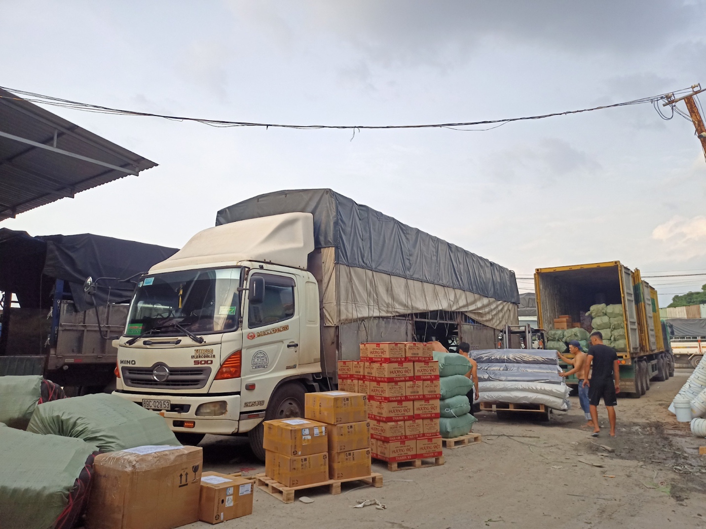 Một buổi bốc hàng hóa chuẩn bị vận chuyển tại vận tải Phương Vy