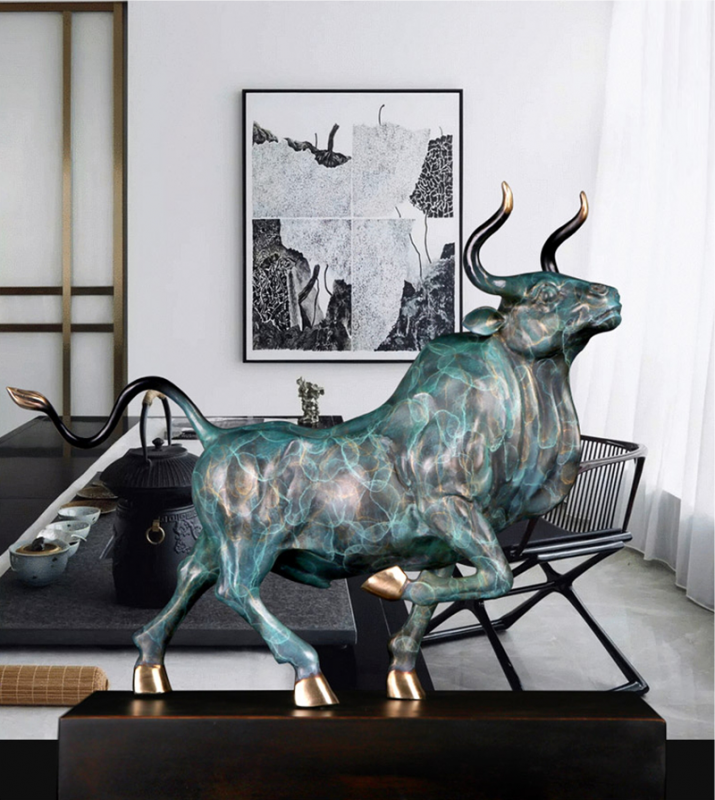 Đặt tượng trong phòng khách, kệ tủ hoặc kệ ti vi có thể mang lại vượng khí cho gia chủ, tuy nhiên khi đặt tượng nên hướng sừng bò ra phía ngoài cửa chính và hơi chếch một chút.