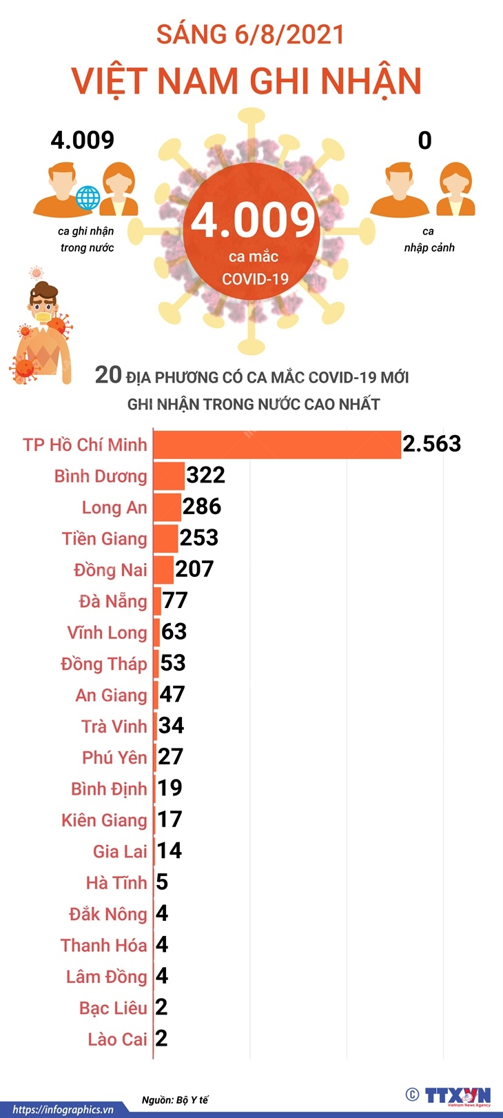 4.009 ca mắc Covid-19 trong sáng ngày 6/8/2021, TP Hồ Chí Minh có 2.563 ca
