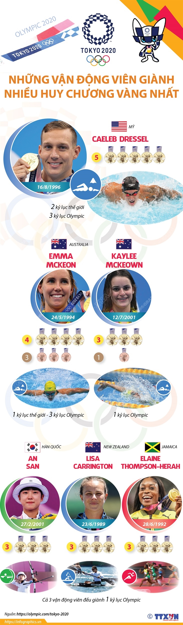 Kình ngư Caeleb Dressel (Mỹ), Emma Mckeon (Australia) hay cung thủ An San (Hàn Quốc) là những cái tên nổi bật với các thành tích ấn tượng đạt được tại Olympic Tokyo 2020.