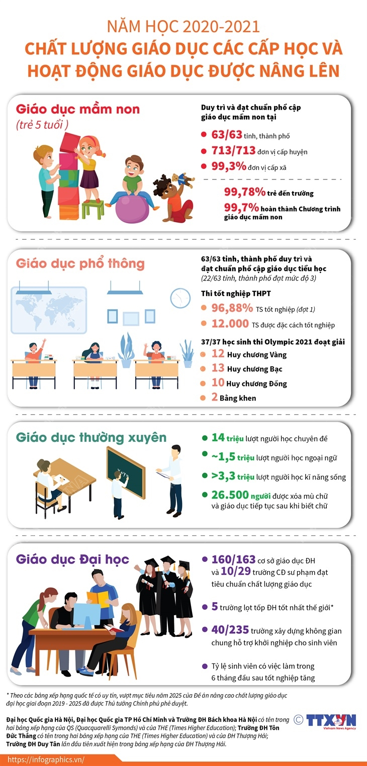 Năm học 2020-2021, mặc dù chịu tác động sâu rộng của dịch COVID-19, nhưng toàn ngành Giáo dục đã hoàn thành mục tiêu kép, vừa tham gia tích cực trong phòng, chống dịch bảo đảm an toàn cho học sinh, giáo viên, vừa hoàn thành kế hoạch năm học, bảo đảm chất lượng giáo dục.