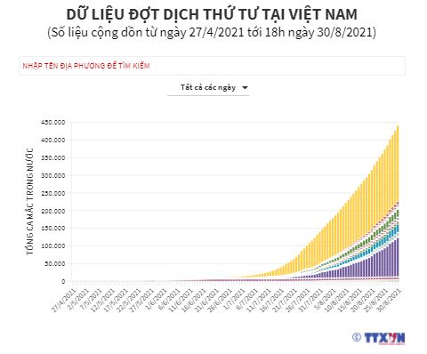 Việt Nam đã có 4 đợt dịch COVID-19. Đợt dịch thứ 4, từ 27/4/2021 đến 18h ngày 30/8/2021, ghi nhận số ca mắc trong nước nhiều nhất, với 445.291 ca.