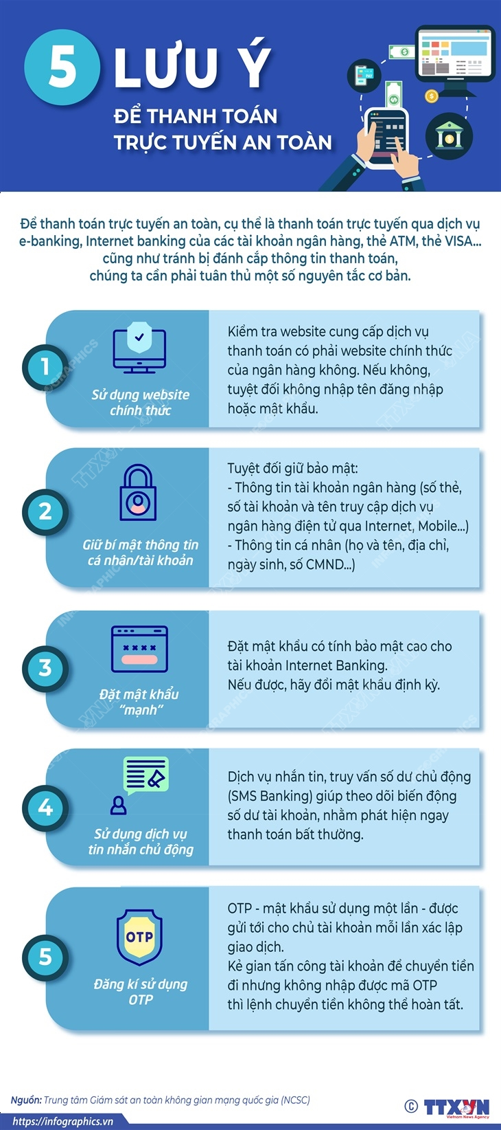 Để thanh toán trực tuyến an toàn, cụ thể là thanh toán trực tuyến qua dịch vụ e-banking, Internet banking của các tài khoản ngân hàng, thẻ ATM, thẻ VISA,… cũng như tránh bị đánh cắp thông tin thanh toán, chúng ta cần phải tuân thủ một số nguyên tắc cơ bản.