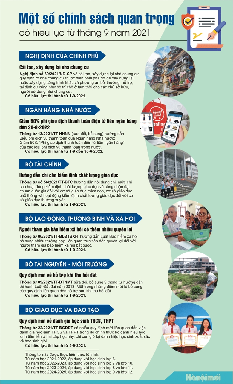 Một số chính sách quan trọng có hiệu lực từ tháng 9-2021